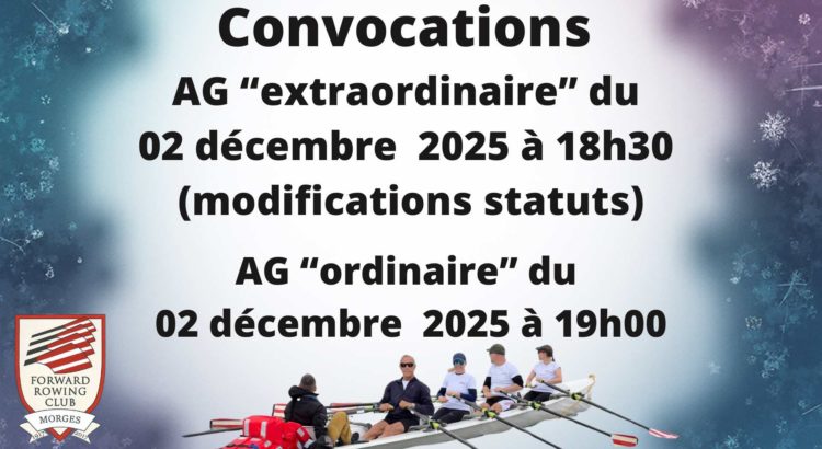 Chères membres, chers membres, Votre comité a le plaisir de vous inviter à deux assemblées successives qui se tiendront le Mardi 2 décembre 2025 au Port du Petit Bois à Morges Lieu : Port du Petit Bois Morges Assemblée extraordinaire Heure : 18h30 Dans le but d’adapter les statuts de notre club aux exigences du […]