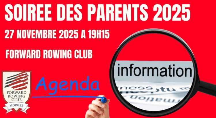 📅 Jeudi 27 novembre 2025🕖 19h15📍 Club-house du Forward Rowing Club Morges, Morges Le Forward Rowing Club Morges invite tous les parents de rameuses et rameurs juniors à sa Soirée des parents 2025.Cette rencontre a pour but de vous présenter le club, le cadre dans lequel vos enfants pratiquent l’aviron, ainsi que le fonctionnement de […]