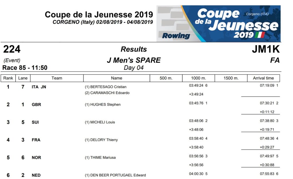 Louis Micheli notre Champion Suisse en 2x juniors était aussi de la partie lors de ce déplacement. Lui aussi a été sélectionné par la FSSA afin de faire sa première apparition au niveau Européen. Il a participé dans la course des skiffs remplaçants. Sa mission dans cette compétition était de palier en tout temps à une blessure et de remplacer un’athlète dans les différents bateaux de la FSSA. Nous le félicitons pour cette qualification et pour sa fantastique médaille d’or aux Championnats Suisse.
