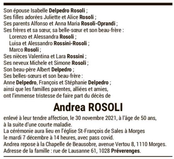 C’est avec une immense tristesse que nous avons appris le décès, à seulement 50 ans, de notre membre loisirs de longue date Andrea Rosoli.