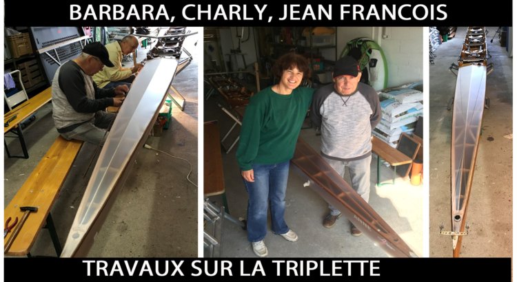 Mais appliquer ensuite la fibre fût un vrai plaisir car les tissus d’aujourd’hui sont de bien meilleure qualité que ce que j’avais utilisé il y a 30 ans. Donc pas besoin de peindre le bateau en blanc, comme je songeais un moment de faire, afin d’ainsi cacher nos travaux! Les nouvelles réparations et joints étants plus fins et robustes, nous avons enlevé au moins autant de poids que ce que nous avons rajouté par la suite. Mais nous n’avons renforcé qu’un sixième de la surface de la coque et la triplette reste donc très fragile, comme tous les vieux bateaux en bois. En dehors de la coque nous avons également réparé les bouts de bois cassés, remplacé les bouchons et refait les joints d’étanchéité. Comme nous ne pouvions pas débuter le gros des travaux avant la fin du mois d’août, nous étions dès le début pressés par le temps, sachant qu’il allait bientôt faire trop froid pour appliquer certains produits. Et en voulant gagner du temps, on en a en réalité perdu énormément.