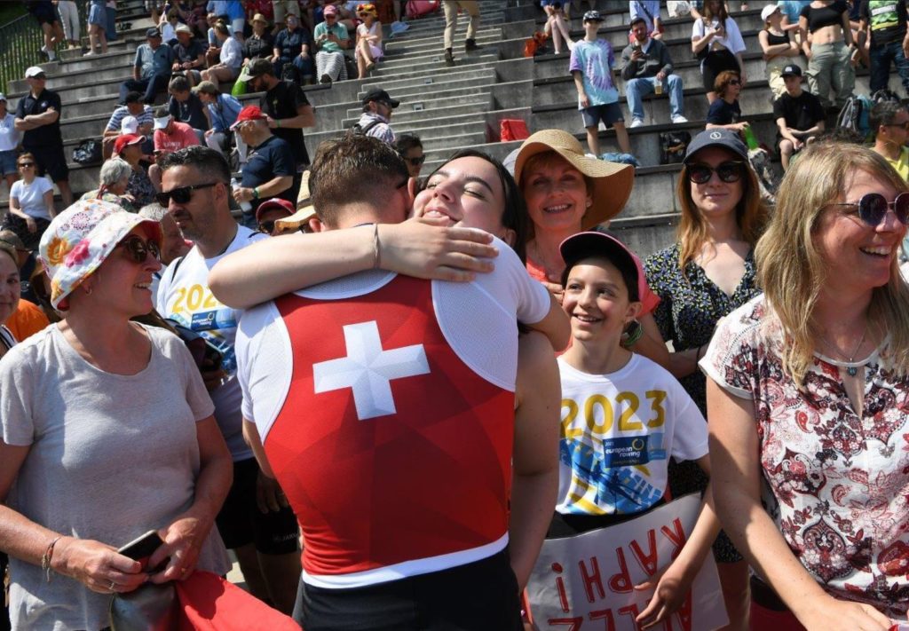 Par beau temps à Bled, tout a été fait pour que la première journée de la finale soit parfaite. Le vent qui soufflait à midi promettait des courses rapides. C’était bien évidemment au goût de deux jeunes rameurs suisses. La situation initiale était simple : le bronze EM dans le double des poids légers était à défendre. Mais tous les bateaux participants savaient qu’ ils devaient tenir compte du bateau Suisse pour le titre de champion d’Europe. Toutefois, les Suisses ont réussi à gérer la pression des équipages adverses.