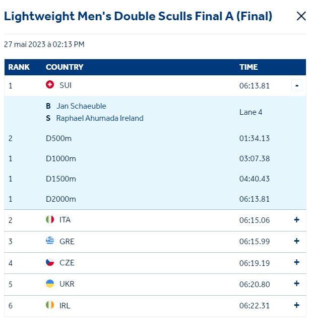 Les Suisses ont pris les devants avant la moitié de la course pour ne jamais laisser la première place. «Même quand l’eau est devenue plus agitée au centre, nous sommes restés techniquement propres», dit Raphaël Ahumada. «Bien sûr, nous avons eu un ou deux petits bugs au total. Tout était très calme et rythmé», a ajouté Jan Schäuble. «Et tout à coup, il y avait les bouées rouges des derniers mètres et j’ai réalisé que nous avions réussi.»