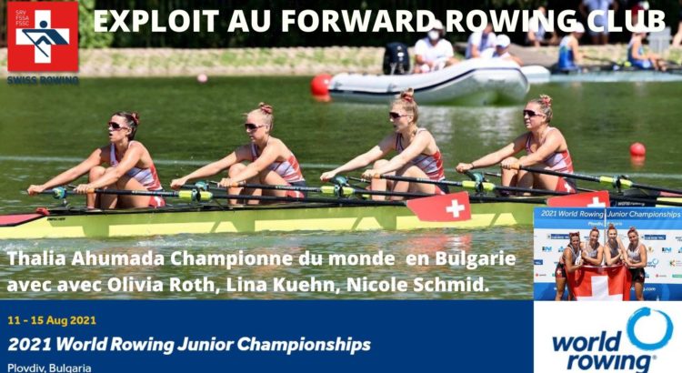 Le Forward Rowing Club a le plaisir de vous annoncer que Thalia Ahumada a remporté la médaille d’or aux championnats du monde en Bulgarie en 4x avec Olivia Roth, Lina Kuehn, Nicole Schmid. Une belle récompense pour tous les sacrifices. BRAVO à toutes incroyable exploit.