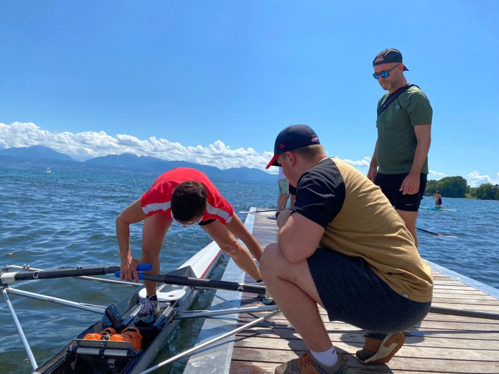 Deux coaches motivés, un soleil radieux et un lac agité: voilà ce qui nous attend pour ce premier module concernant la technique sur skiff.